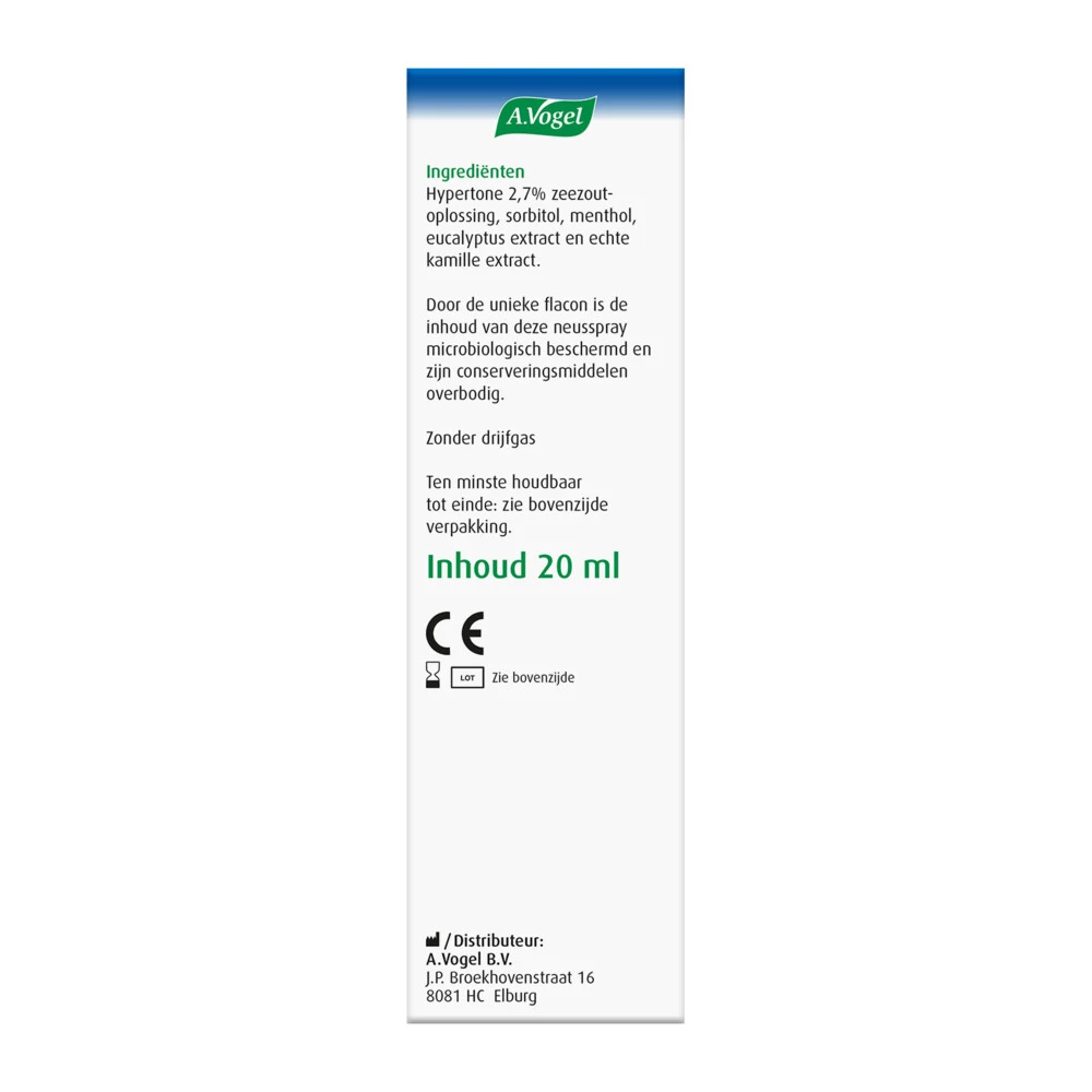 A.Vogel Neusspray Extra Sterk met MentholMedisch hulpmiddel Cinuforce Neusspray Extra Sterk bevat een extra sterke zeezoutoplossing, menthol en eucalyptus. Het hoge zeezoutgehalte van 2,7% verdunt het neusslijm en laat gezwollen neusslijmvlies slinken. Je neus gaat snel weer open, waardoor je vrij ademt. A.Vogel Neusspray Extra Sterk met Mentholwerkt snel en doeltreffend bij neusverkoudheid, een verstopte neus en loopneus. Cinuforce Neusspray Extra Sterk opent je neus al in 2 minuten*. Krac