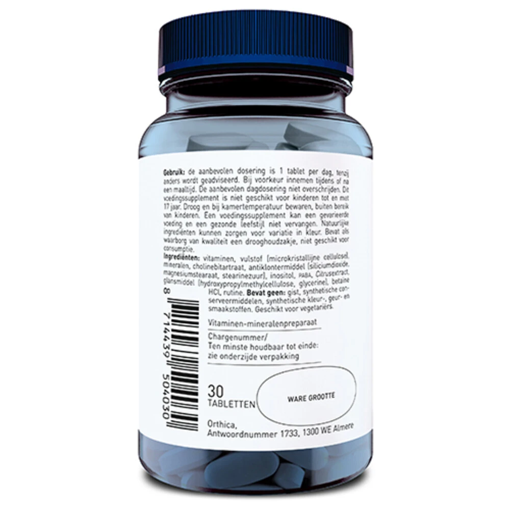 Orthica Multi MaxMulti Max van Orthica is een hooggedoseerde multivitamine- en mineralenpreparaat. Deze multivitamine is de hoogst gedoseerde binnen het Orthica assortiment. Orthica Multi Max is: Geschikt voor 18 jaar en ouder.Goed voor de spieren en bij geestelijke inspanning. Hoogst gedoseerde Multi van Orthica Bij geestelijke inspanning1 Vitamine D is goed voor de spieren B-vitaminen bevordert de energiestofwisseling2De verpakking is van 100% gerecycled plastic, ofwel