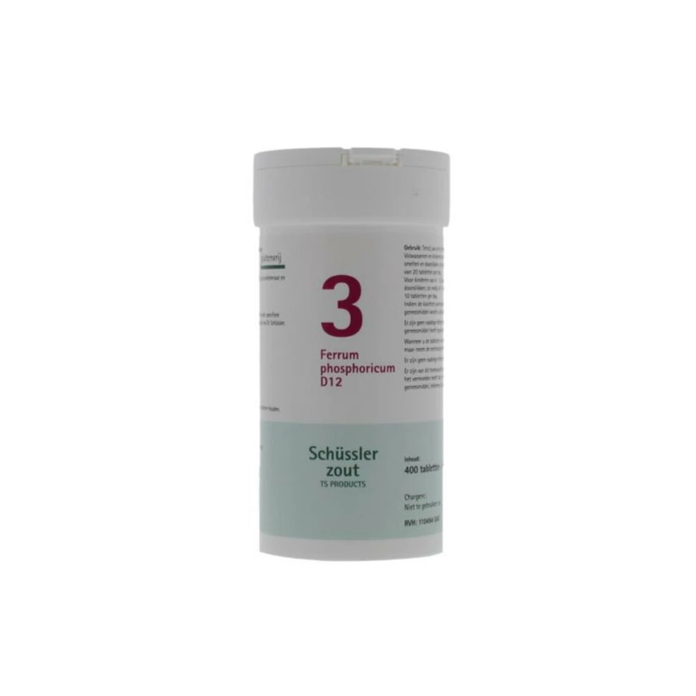 Pfluger Schussler Celzout 03 Ferrum Phosphor D12Pfluger Schussler Celzout 03 Ferrum Phosphor D12 400 tabletten is een homeopathisch geneesmiddel. Pfluger Schussler Celzout 03 Ferrum Phosphor D12 wordt toegepast volgens de principes van de homeopathische geneeswijze. Door de huidige wetgeving is het niet mogelijk om op de verpakking te vermelden waar dit product voor is (indicatie) en meer informatie te geven. Onze drogist mag je die informatie wel persoonlijk geven, dus als je vragen hebt over d